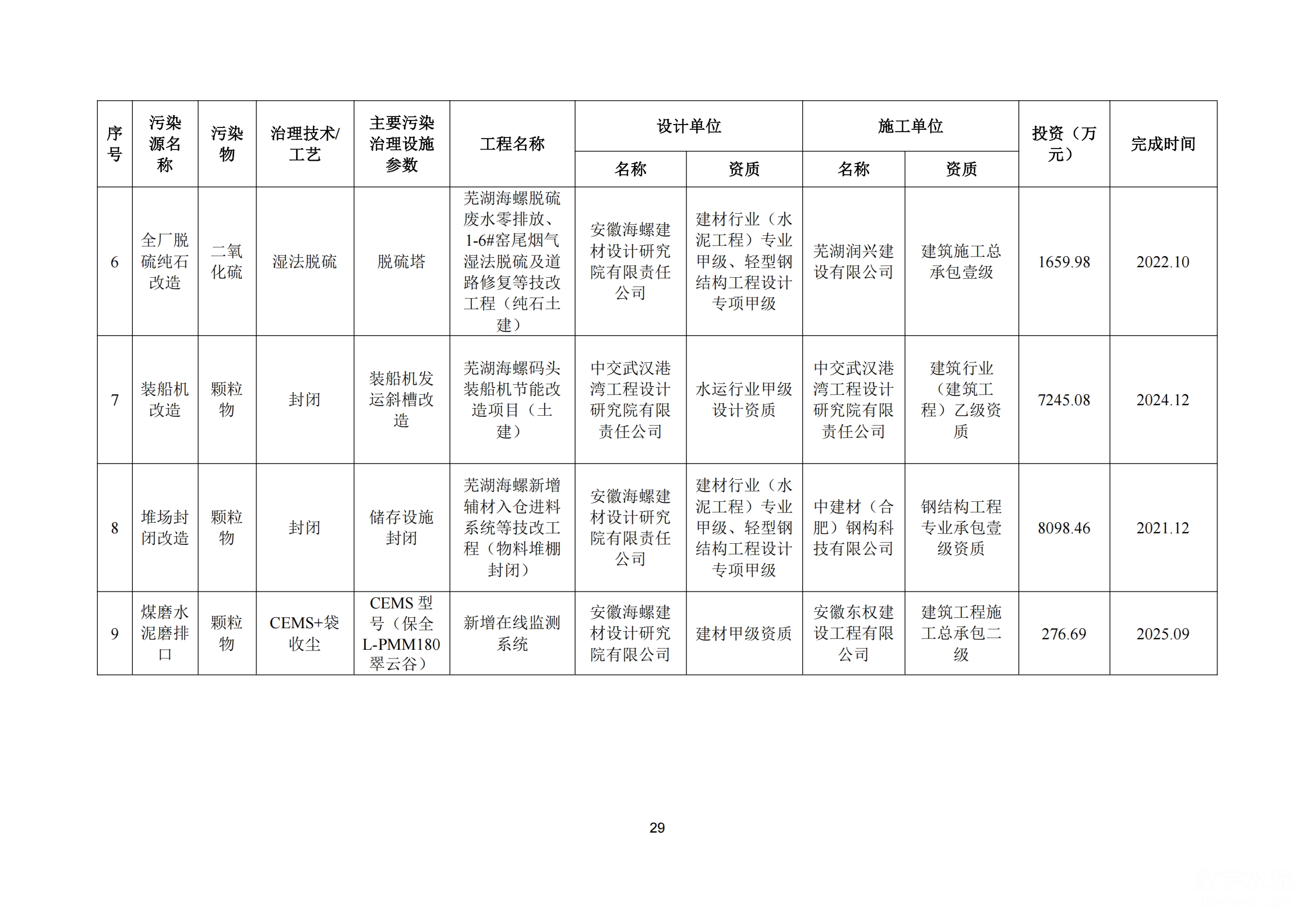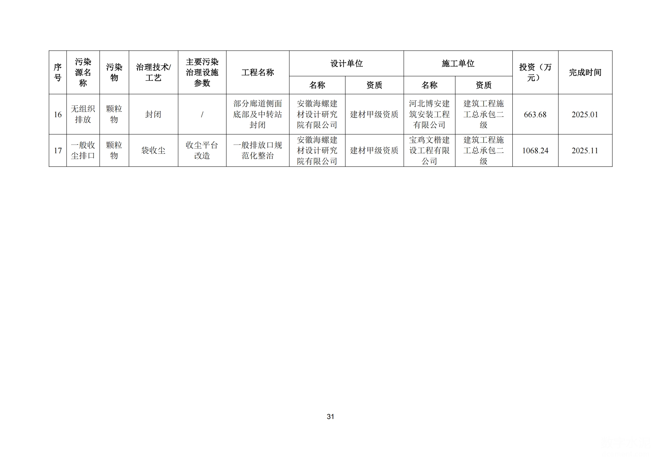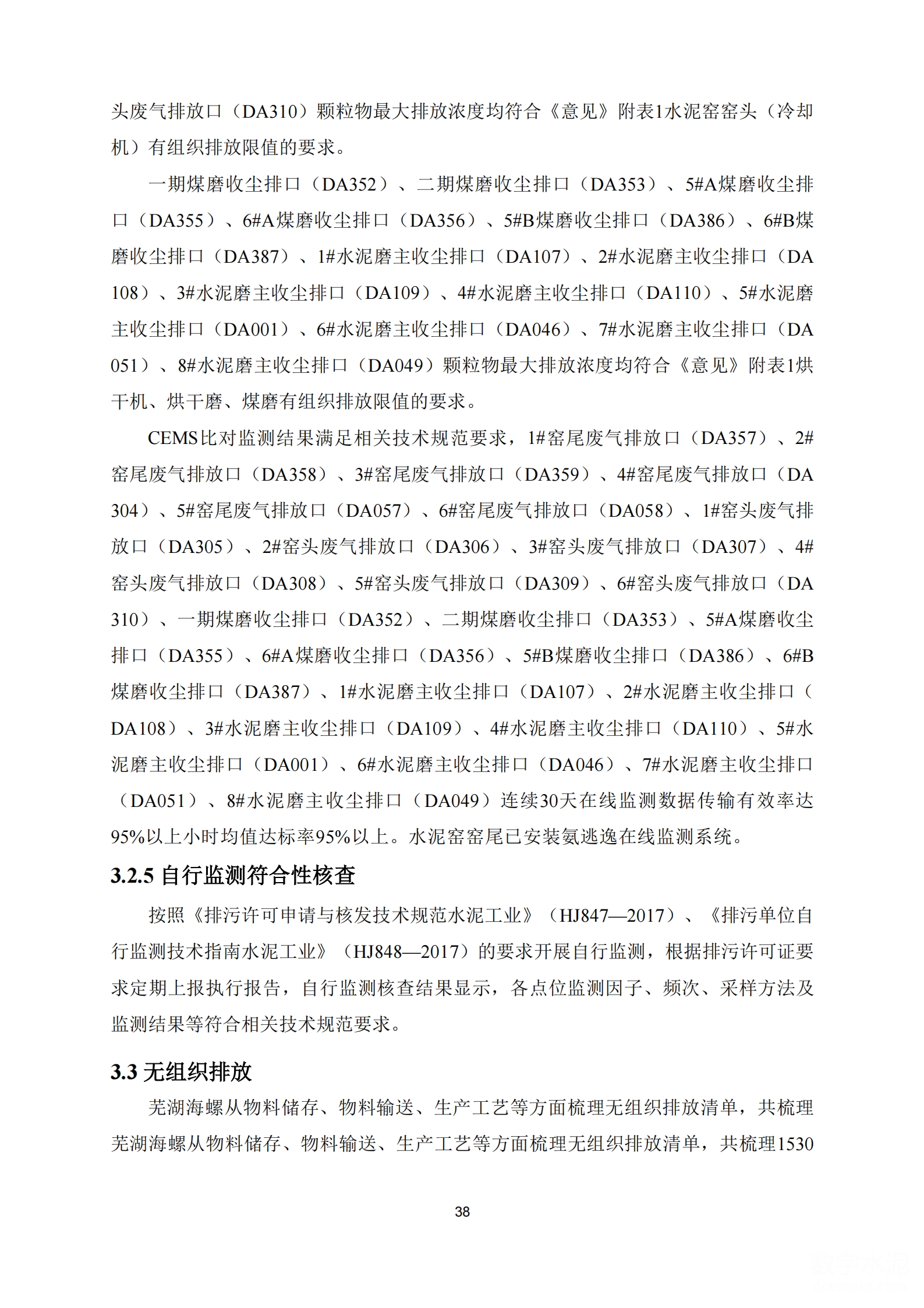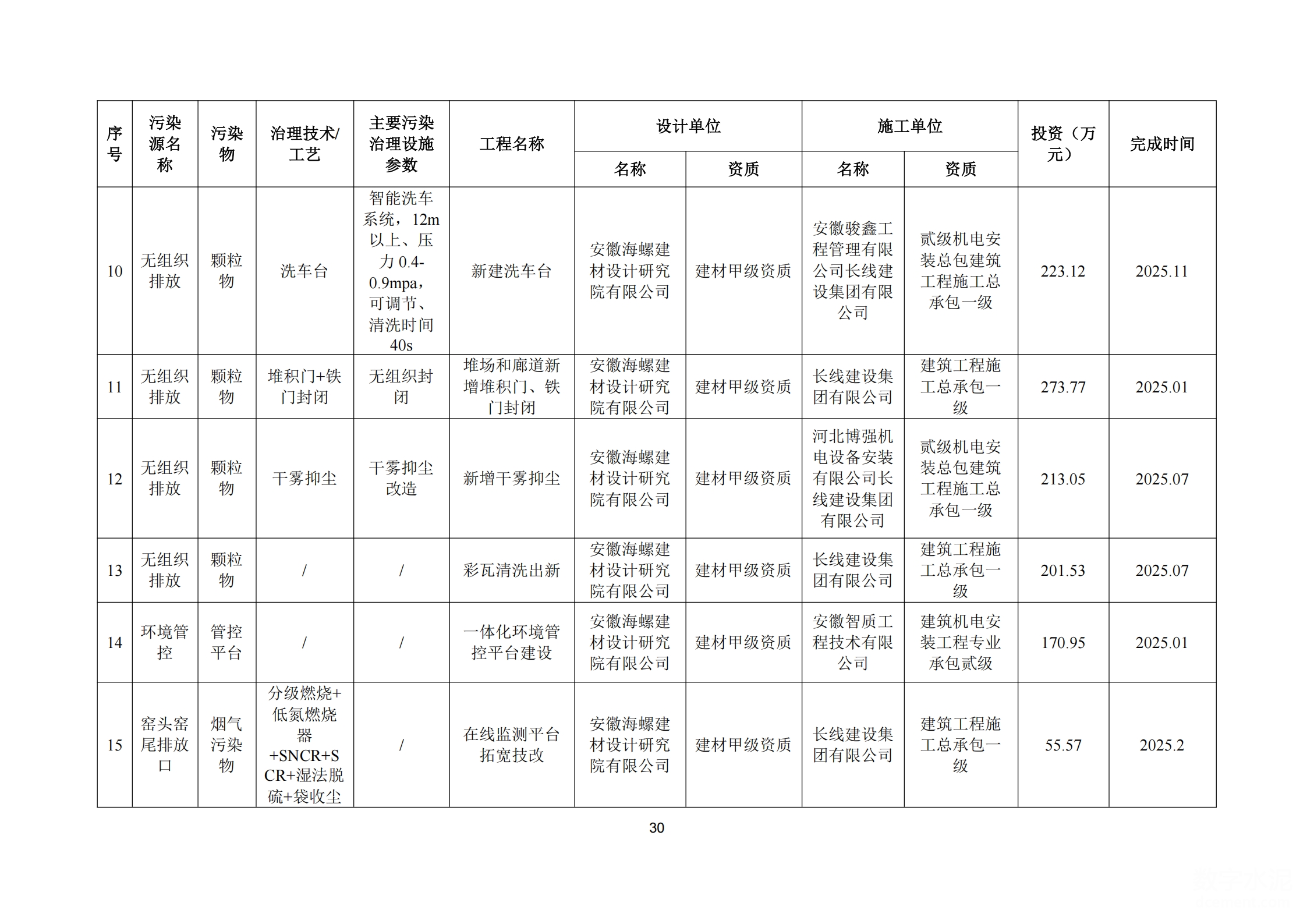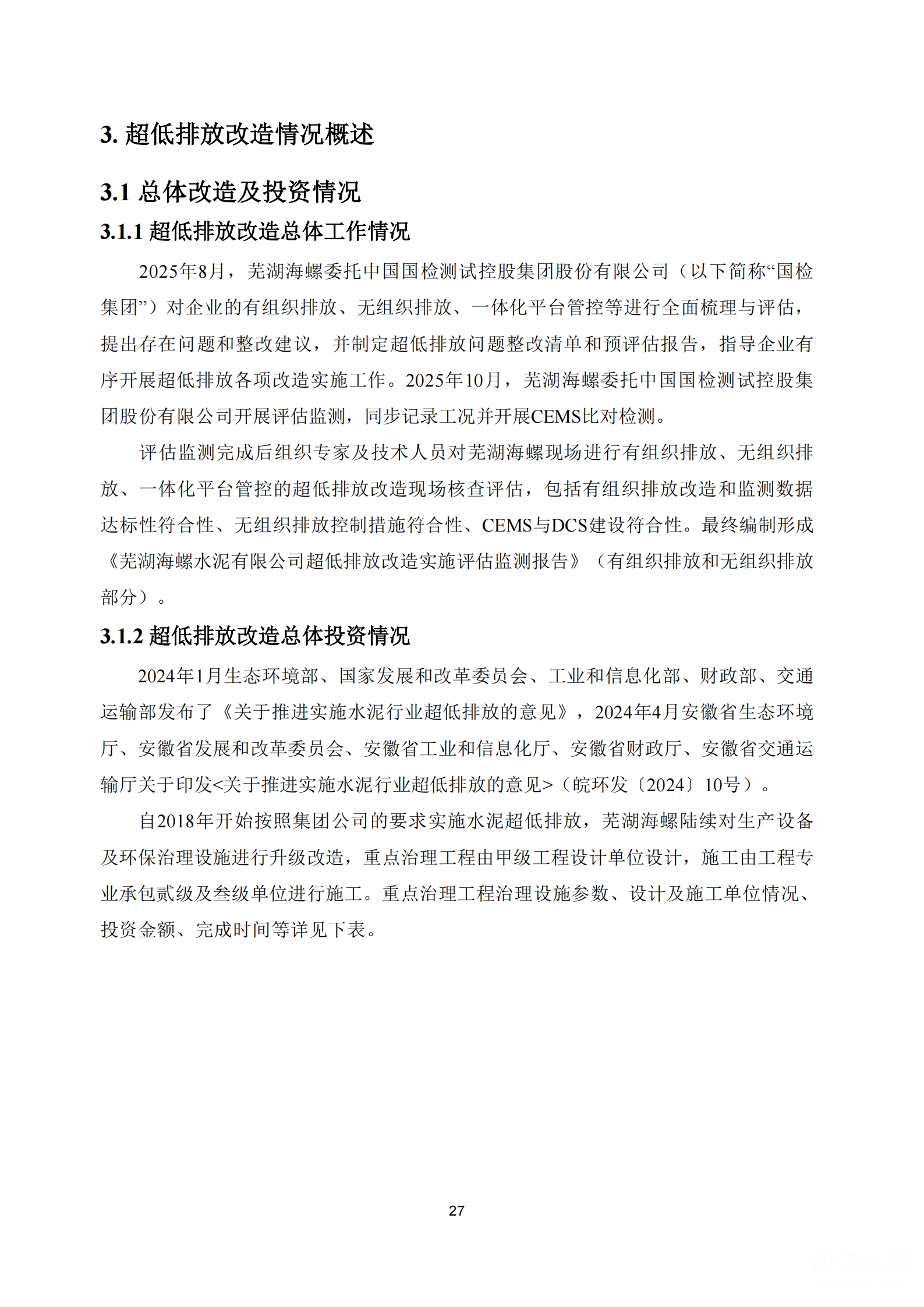 蕪湖海螺水泥有限公司有組織、無組織部分超低排放改造和評(píng)估監(jiān)測進(jìn)展情況公示內(nèi)容
