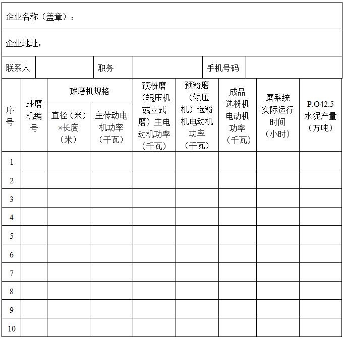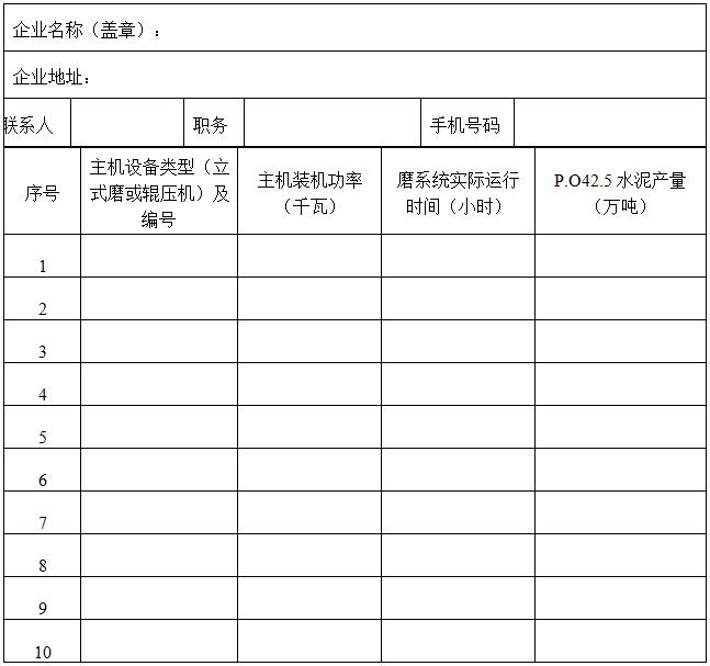 ? ? 5.“磨系統實際運行時間”為磨系統2017年全年生產P.O42.5水泥的實際運行時間(多數企業統計為磨入料時間);“P.O42.5水泥產量”為水泥粉磨站2017年全年生產P.O42.5水泥的實際產量。
