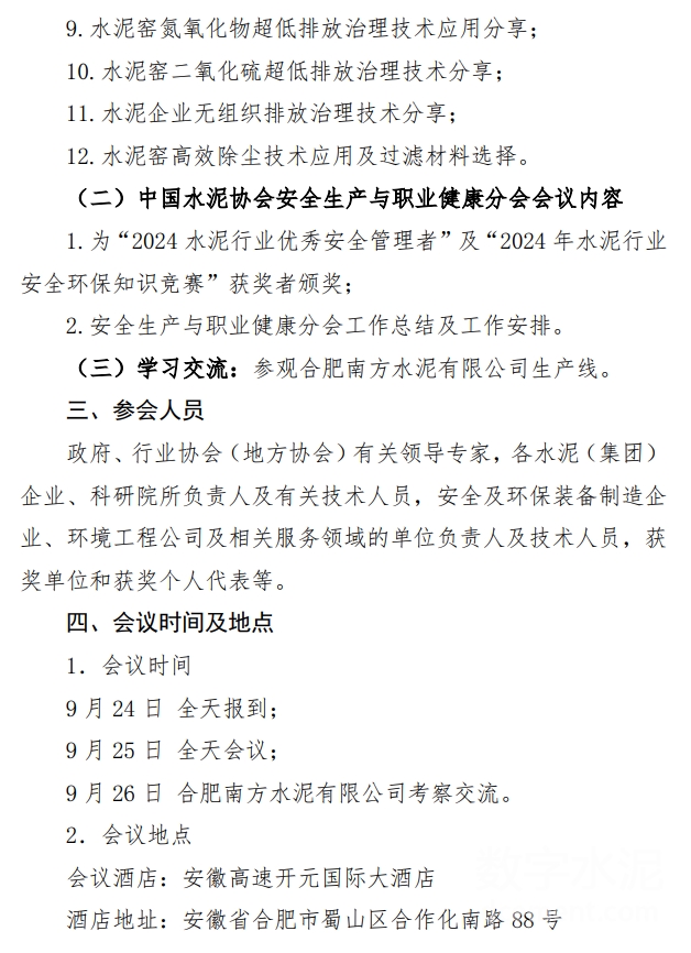 關于召開“2025年中國水泥協會環保和資源綜合利用專委會及安全生產與職業健康分會年會暨水泥企業超低排放公示推進會”的通知
